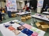 <baby・80cm・90cm・100cm・110cm・120cm以上・雑貨小物>1,000着以上の古着を、見やすいようにきれいに並べて準備☆机に並びきらない古着は下のダンボールにもたくさん!