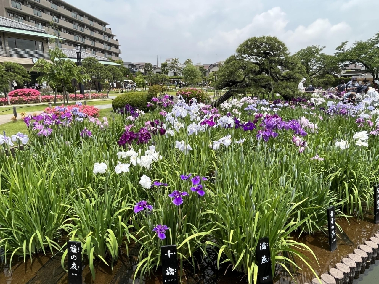平成に生まれた品種「堀切の夢」を始めとした、色とりどりの花菖蒲が咲いており、丁寧に整備された庭園は一見の価値あり。